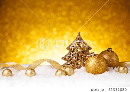 Golden christmas fir tree decoration with gold
