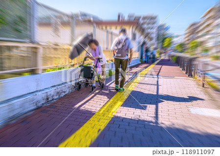 日本の川崎都市景観 高齢化社会… =川崎市内で