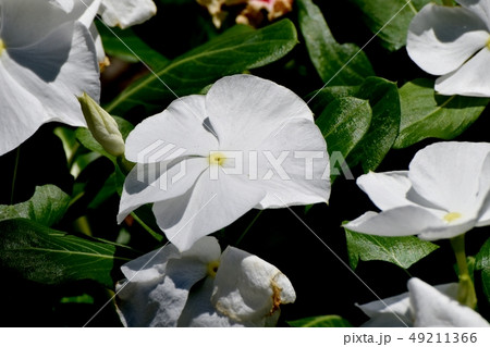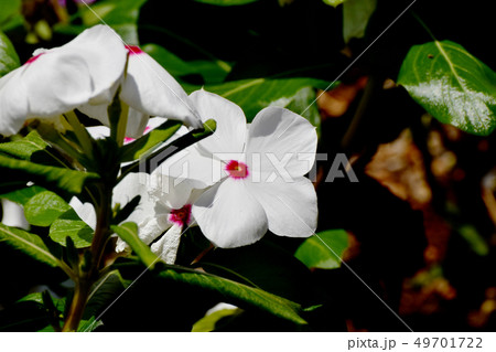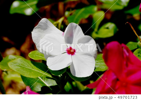 三鷹中原に咲く白いニチニチソウの花