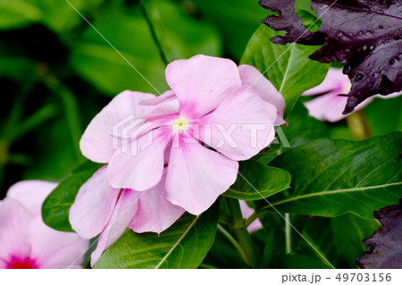三鷹中原に咲く薄いピンクのニチニチソウ