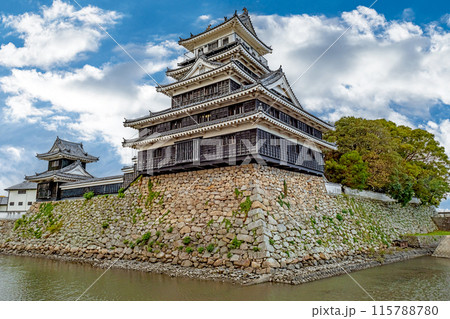 中津城の本丸天守と大鞁櫓、薬研堀(大分県中津市)