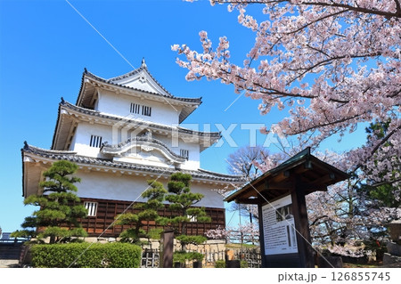 【佐賀県】晴天の唐津城天守閣と満開の桜