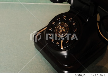 レトロなダイヤル式電話機 ゴールドの装飾が美しいヴィンテージ電話