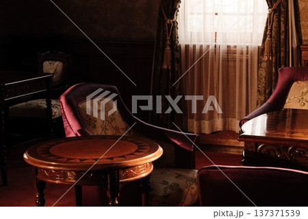 歴史的建造物の内装 落ち着いた光が差し込むレトロな窓辺のテクスチャ