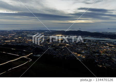 福岡県、皿倉山展望台から眺める北九州市の夕景(黒崎駅方面)