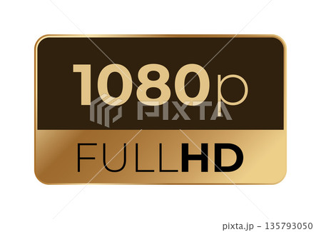 Hd 1080p icon: high definition visual quality symbol in gold