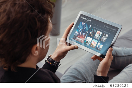 Man using tablet for watching VOD service
