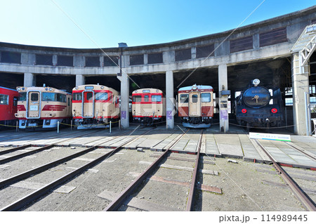 津山まなびの鉄道館「扇形機関車庫」と各旧型車両群