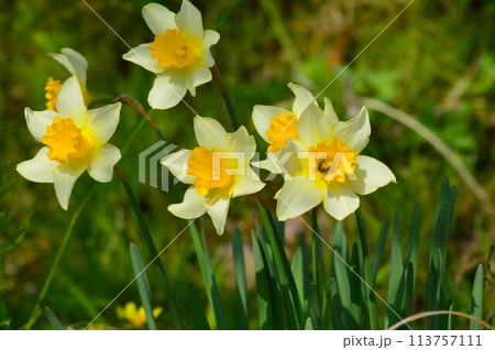 春の野原に咲くラッパスイセン(喇叭水仙)