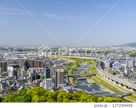 五月山から見る猪名川沿いに広がる街の風景