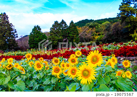 秋に咲くひまわりとケイトウ 【佐賀県 山田ひまわり農園】