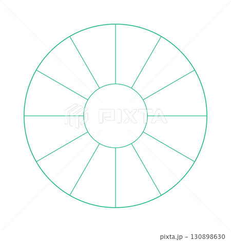 シンプルな12分割の円形フレーム - ドーナツ型の円グラフや12時間・1年間などの図表のテンプレート