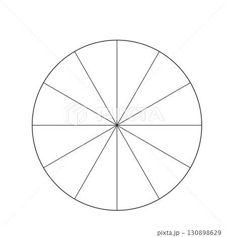シンプルな12分割の円形フレーム - 円グラフや12時間・1年間などの図表のテンプレート