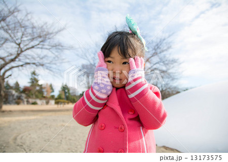 手袋をつけた女の子