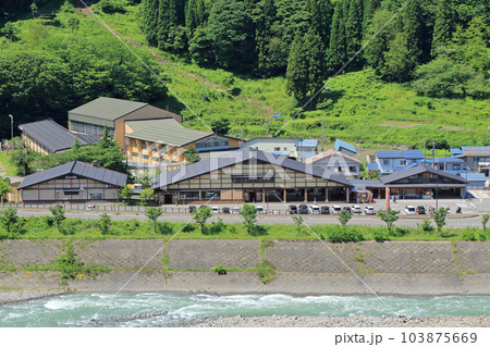 信州 北小谷 国道148号 道の駅「おたり」施設遠望(対岸より)