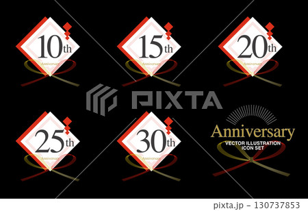 イラスト素材:和風アニバーサリーお祝いロゴセット10~30th、水引、のし