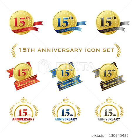 十五周年記念のアイコンセット。リボンと装飾フレーム。
