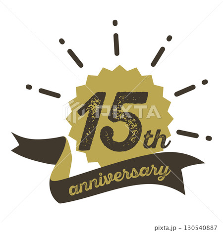イラスト素材:和風アニバーサリーお祝い金色ロゴ15th、水引、のし