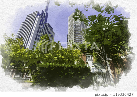 水彩画風 神戸 神戸市役所から三宮駅方面を望む 兵庫県神戸市