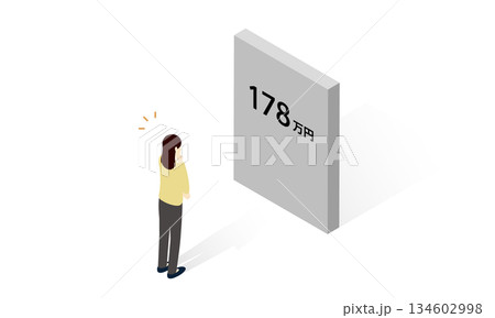 年収の壁178万円への引き上げを表現したアイソメトリックイラスト