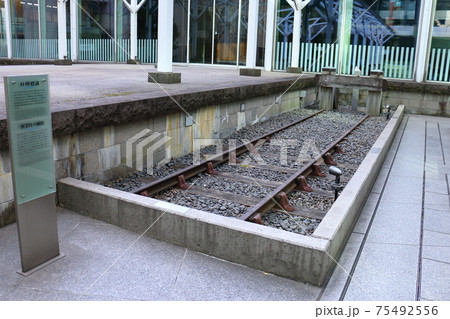 東京都港区東新橋の旧新橋停車場の鉄道起点ゼロマイル標識