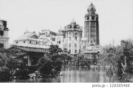 古写真 1914-1918年 東京 浅草公園の凌雲閣と瓢箪池