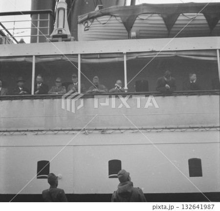 古写真 1939年 日中戦争中の中華民国 一時帰国のための船に乗る日本軍関係者