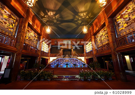【日本】東京都千代田区の靖国神社の門戸に飾られた大きな金色の菊花紋章