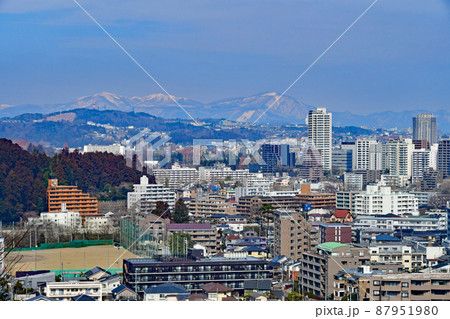 杜の都仙台 広瀬川 大満寺 虚空蔵堂 境内から泉ヶ岳・船形山を望む