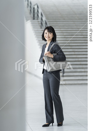 カメラ目線で笑顔のアラフィフのビジネスウーマン