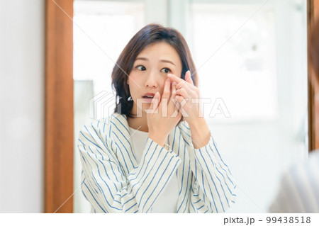 コンタクトレンズを入れる若い女性