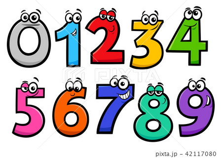basic numbers cartoon characters set