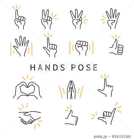3色の線画アイコン 手のポーズ 黒基調