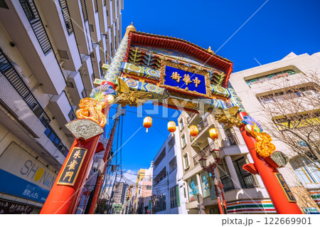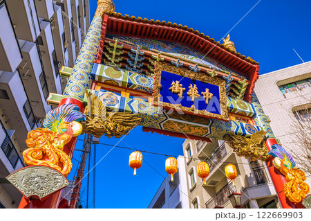 日本の横浜都市景観 横浜中華街・玄武門などを望む…新時代へ=令和7年2月1日