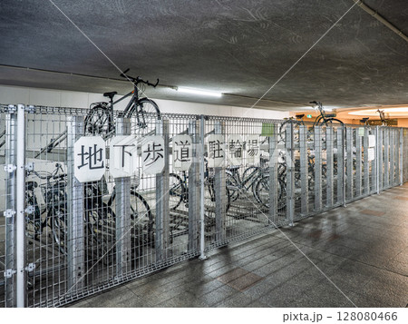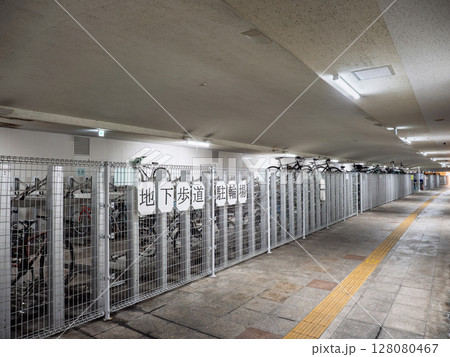駅前の地下歩道に併設されている有料駐輪場のゲート
