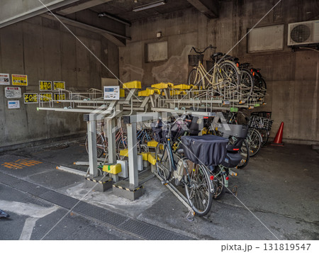 マンション 共同住宅の 駐輪場 2段式サイクルラック
