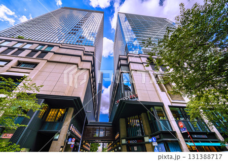 日本の東京都市景観 日本橋室町・CORED室町2などを望む。(奥にはビルの谷間の福徳神社)