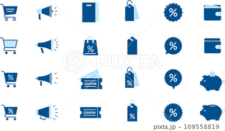 買い物・セールの2色のシルエットアイコンセット