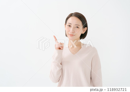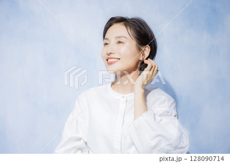 30代女性 白背景 カメラ目線