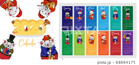 2020 calendar. Dedicated to the year of the mouse. Funny mice in different situations. For design and cards.