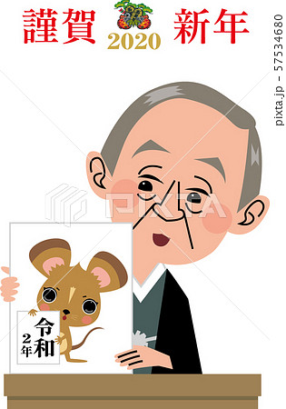2020年 令和2年 年賀状 縦 ネズミと政治家 謹賀新年