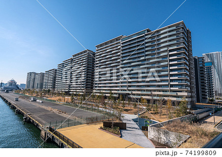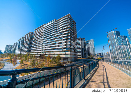 日本の東京都市景観 豊洲大橋から晴海フラッグなどを望む