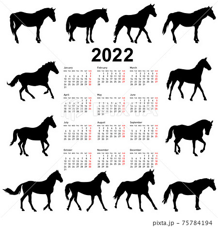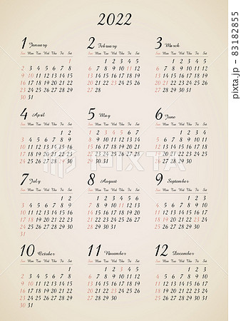 2022年 カレンダー 線の太さを変更可能なベクターイラスト (8px)