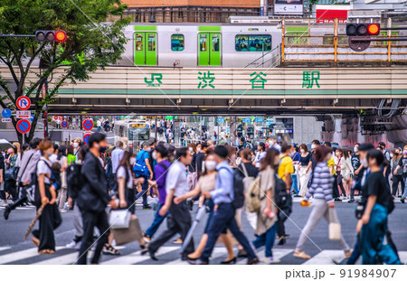 日本の東京都市景観 9万人超全国、第7波BA.5肺感染超速爆発…東京1万6878人=渋谷、7月13日