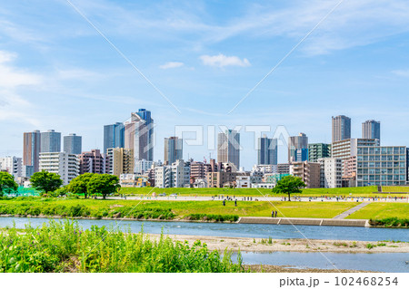 【神奈川県】春の多摩川から武蔵小杉方面を望む