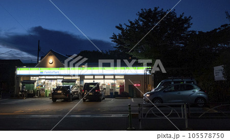 夕暮れのコンビニの灯り