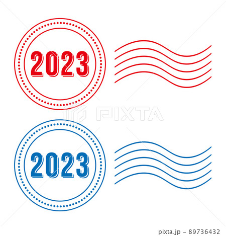 2023 スタンプ風デザインと影付き文字の赤と青の素材セット
