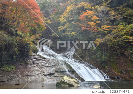 晩秋の房総半島、粟又の滝(養老の滝)、滝壺に降り滝の斜めから滝の流れを切り取る