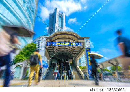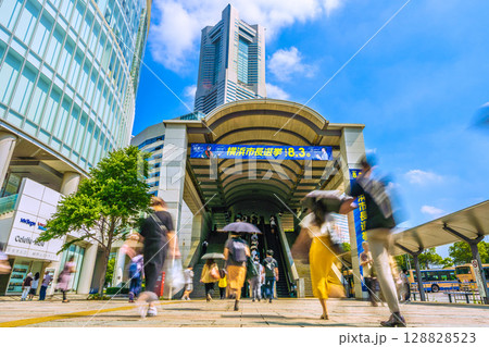 日本の横浜都市景観 選挙等イメージ…朝の通勤風景。有権者の判断は…奥は横浜市役所=24日