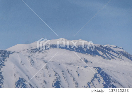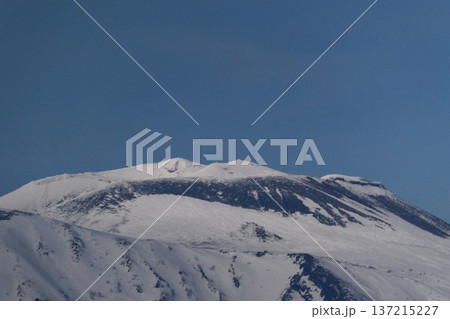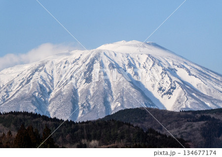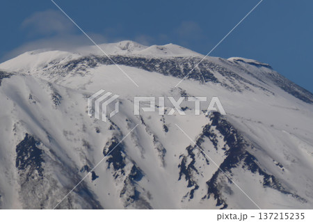 岩手県滝沢市小岩井農場付近から見た秀峰岩手山の頂上付近の雪解け